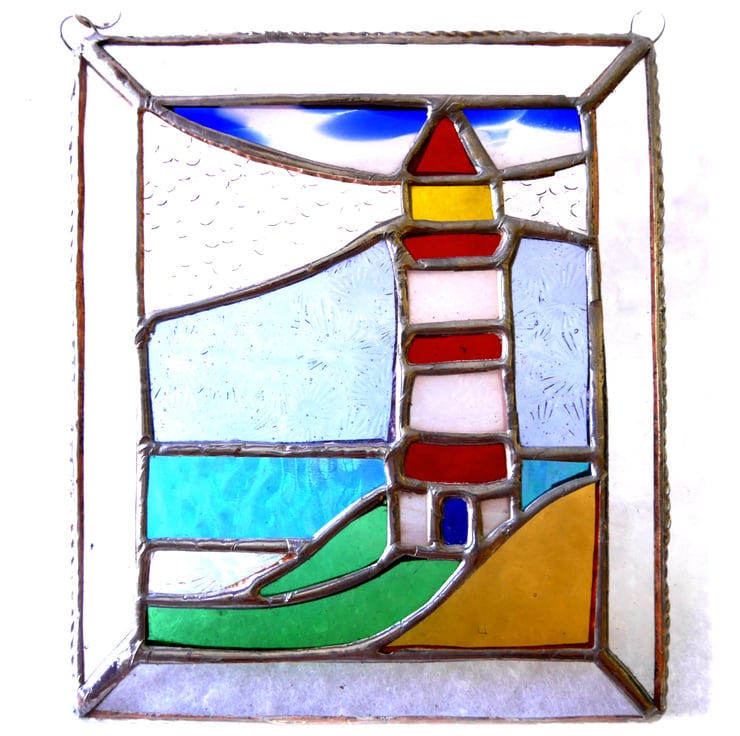 Stained Glass Lighthouse Panel 45x61cm 18x24in Lawson Glassworks